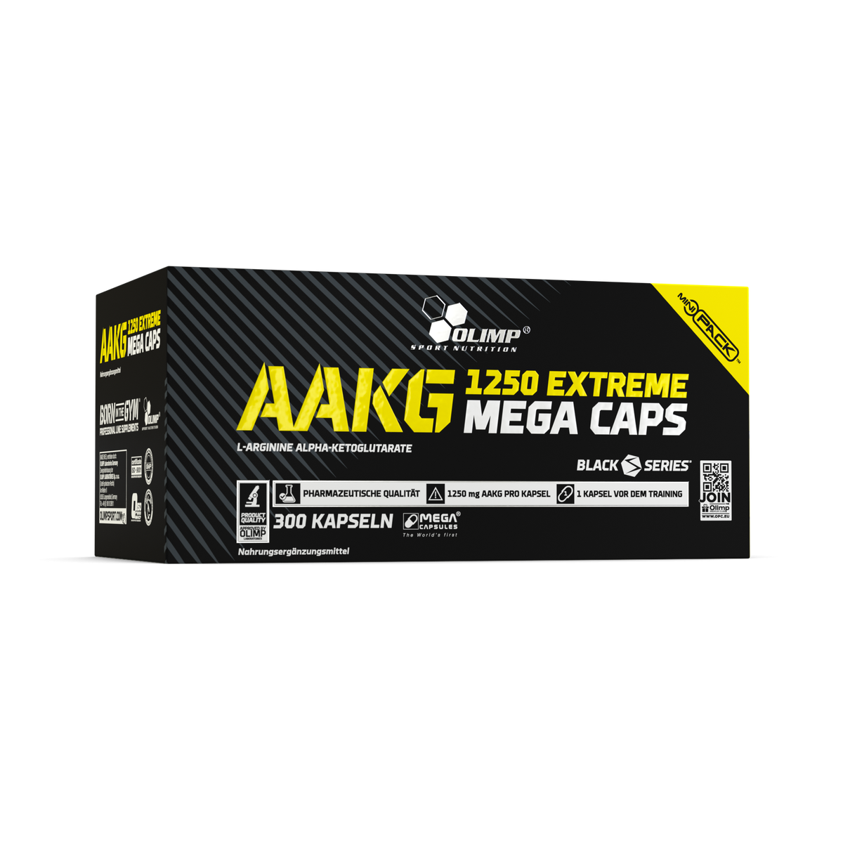 AAKG EXTREME 1250 MEGA CAPS Nahrungsergänzungsmittel in Kapseln, enthält L-Arginin in der Form von L-Arginin Alpha-Ketoglutarat (AAKG).