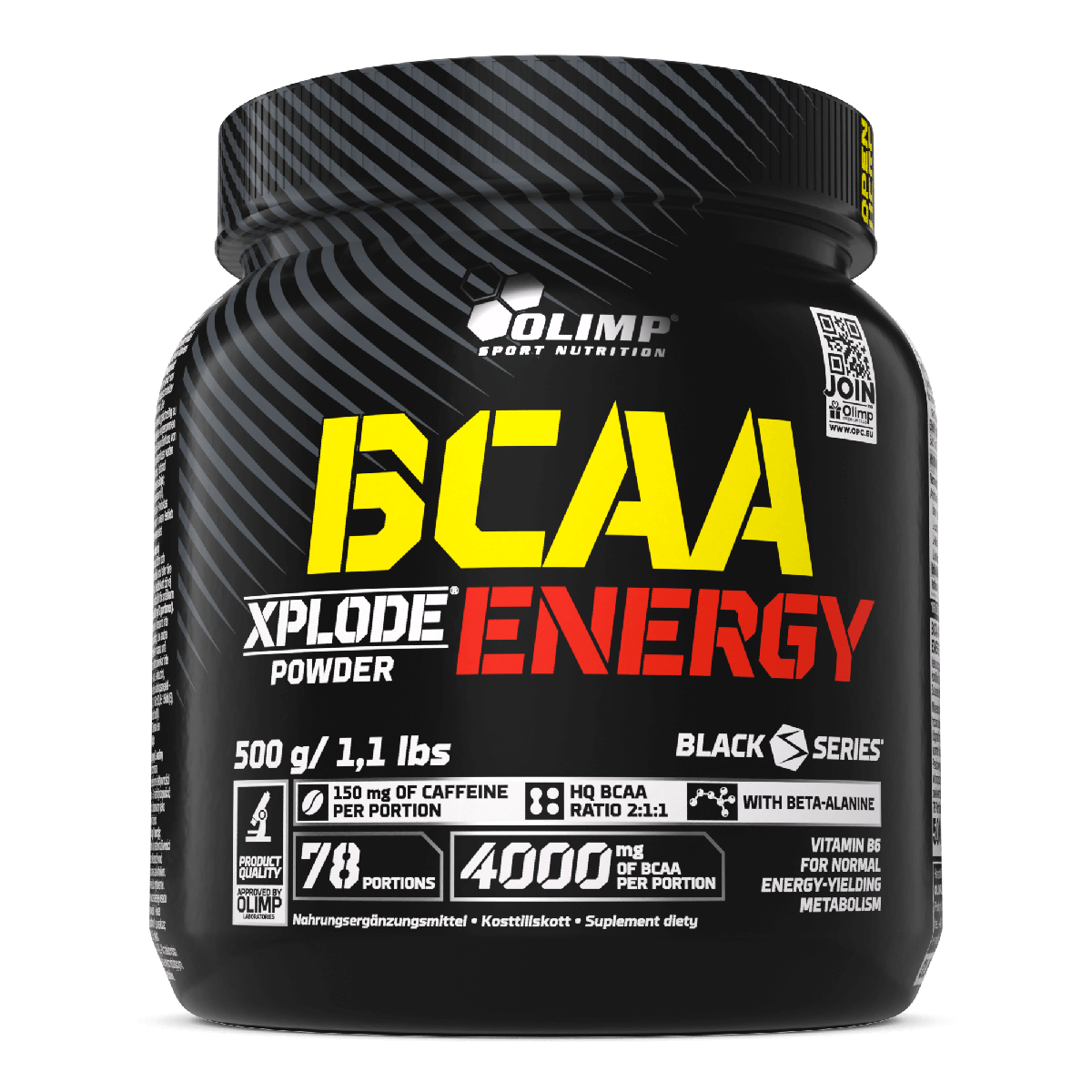 Olimp BCAA Xplode Powder® Energy. Nahrungsergänzungsmittel in Pulverform mit Süßungsmitteln, mit einer Komposition aus verzweigtkettigen Aminosäuren BCAA (L-Leucin, L-Valin und L-Isoleucin) im Verhältnis von 2:1:1, ergänzt um Beta-Alanin, Koffein und Vitamin B6. Vitamin B6 trägt zu einem normalen Energiestoffwechsel und zur Verringerung von Müdigkeit und Ermüdung bei. Das Produkt ist für körperlich aktive Erwachsene und Sportler bestimmt.