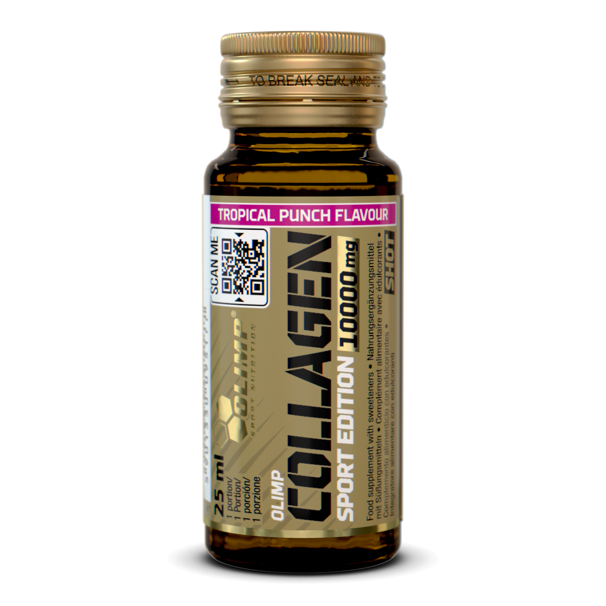 Die Ampulle Collagen Sport Edition Shot kräftig schütteln. Schraube den Deckel ab und genieße den köstlichen, erfrischenden Geschmack der Tropical Punch! Jeder der kleinen Glas-Shots (25 ml) enthält 10 g Kollagen, das dein Körper im Laufe der Jahre immer weniger produziert. Es lohnt sich also, diesen wertvollen Bestandteil für Gelenke, Haut, Knochen, Blutgefäße oder Zähne zu pflegen, indem man die richtige Menge Kollagen zu sich nimmt, auch mit Hilfe von Nahrungsergänzungsmitteln!