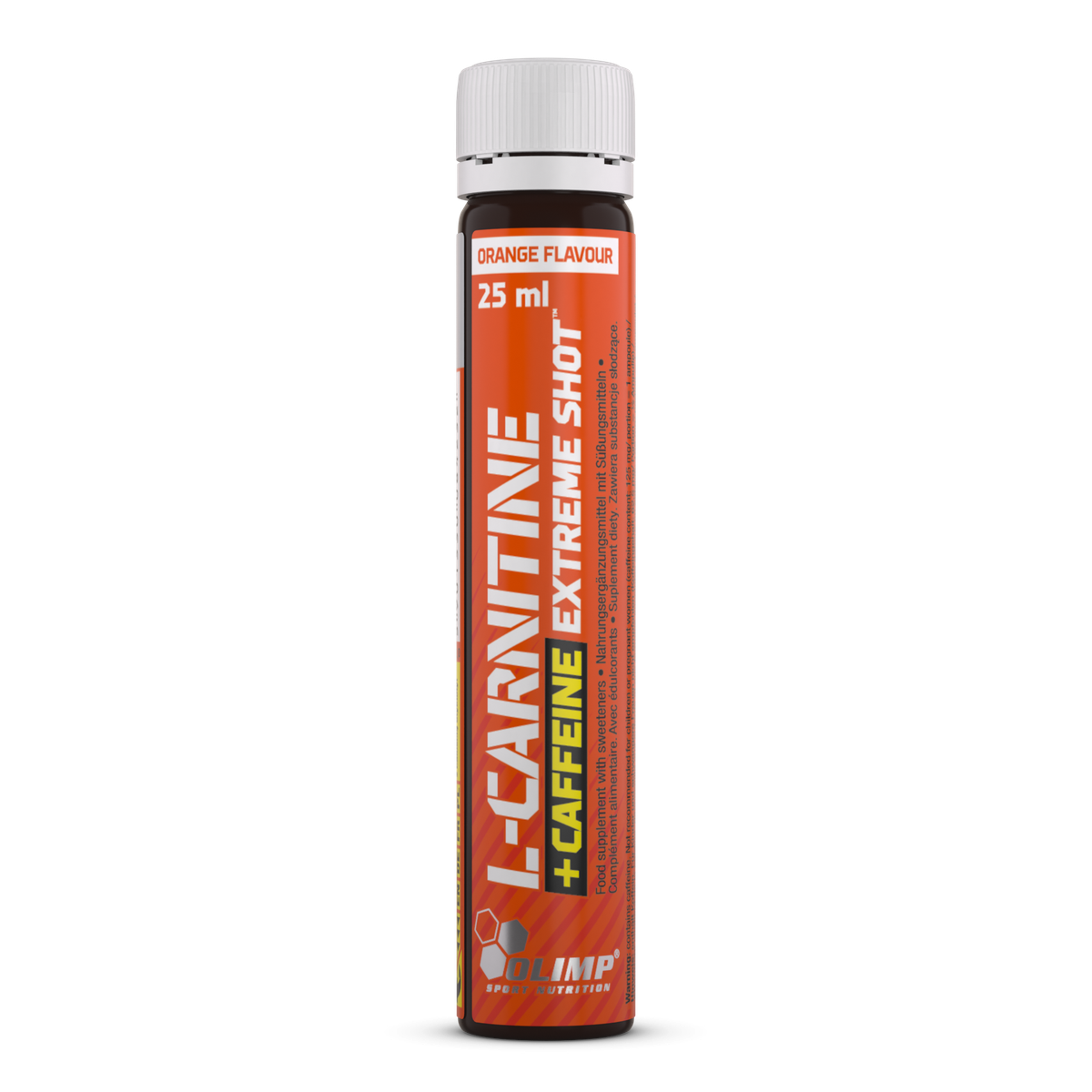 Olimp L-Carnitine + Caffeine Extreme Shot - Nahrungsergänzungsmittel in Liquidform mit L-Carnitin, Koffein und Vitamin B6. Mit Süßungsmitteln. Orangengeschmack. Ampulle 25 ml.