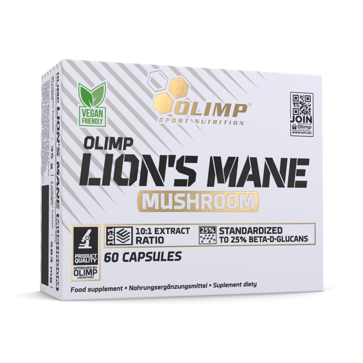 OLIMP LION’S MANE MUSHROOM Nahrungsergänzungsmittel in Kapseln mit Hericium erinaceus (Igelstachelbart) Extrakt. Produkt eignet sich für Veganer. Der Igelstachelbart gehört zu der Gruppe der Adaptogene – Substanzen natürlichen Ursprungs, die die adaptiven Eigenschaften eines Organismus als Reaktion auf ungünstige Umgebungsbedingungen erweitern.