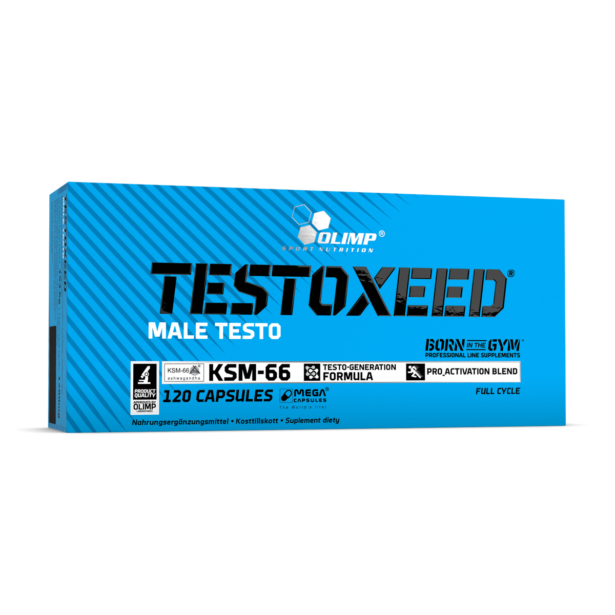 Olimp Testoxeed® Mega Caps. Nahrungsergänzungsmittel in Kapseln auf Basis von zwei Mischungen – der Formel TESTO-GENERATION und der Mischung PRO_Activation Blend. Testoxeed ist eine hervorragende Kombination von Wirkstoffen, die zur Erhaltung eines normalen Testosteronspiegels im Blut (Zink) und zur Regulierung der Hormontätigkeit (Vit. B6) beitragen.
